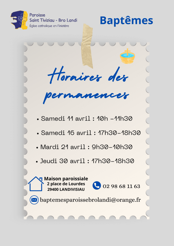 Prochaines dates des permanences pour demander le Baptême pour les 0 à 4 ans